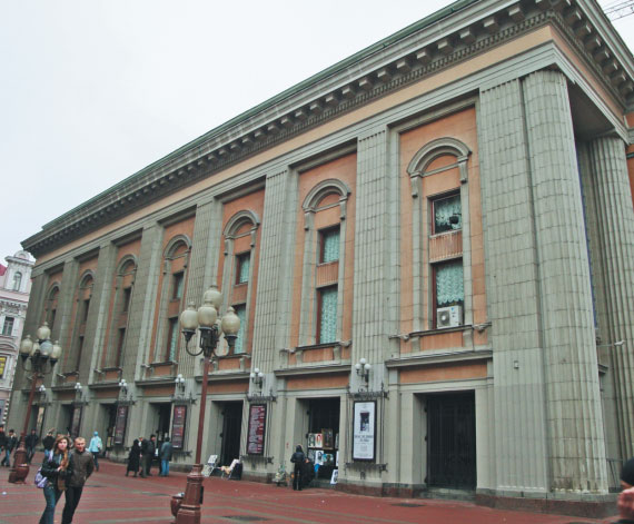 А в самом конце переулка (фасадом на старый Арбат) стоит Вахтанговский театр.