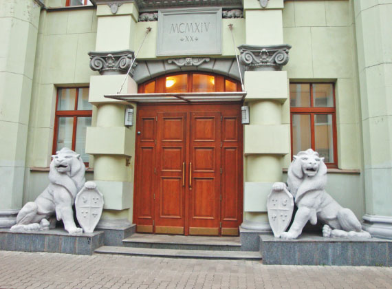 Здание доходного дома было построено в 1914 г. по проекту архитектора Ивана Кондратенко. В «Доме со львами» в первый год революции жил писатель Алексей Толстой. В 1950-е в доме вполне могли быть коммуналки.