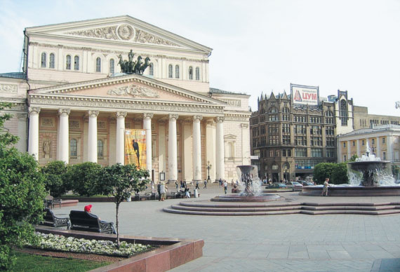 Вид Театральной площади со стороны Большого театра, после открытия «Новой сцены»