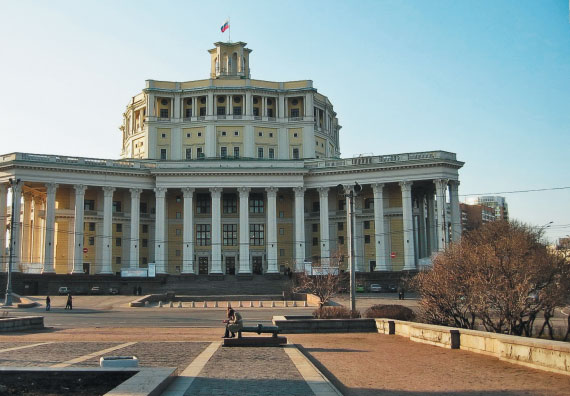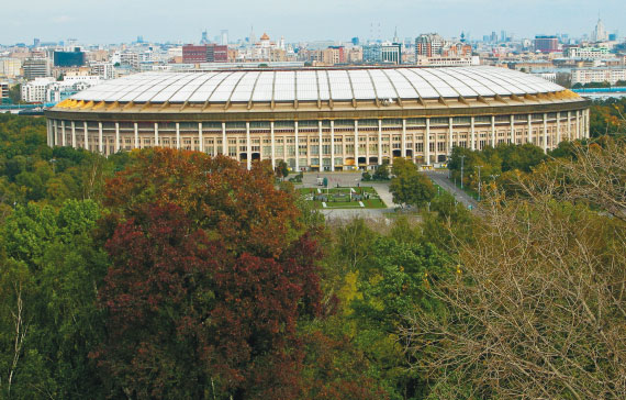 В начале 1950-х советские спортсмены впервые после войны вышли на мировую арену и приняли участие в Олимпийских играх, завоевав на Олимпиаде в Хельсинки 71 медаль. В результате в 1954 г. правительство СССР приняло решение о сооружении большого московского стадиона, соответствующего мировым стандартам. Место спортивному гиганту выделили в Лужниках. Это была единственная свободная территория, пригодная для масштабного строительства и одновременно вблизи центра города, связанная с центром новыми магистралями и веткой метро. И вот уже 31 июля 1956 г. посреди зеленого массива на берегах Москвы-реки состоялось торжественное открытие Центрального стадиона, построенного в рекордно короткие сроки – всего за полтора года. В Лужниках образовался настоящий спортивный город. Помимо основного стадиона, на площадке вблизи реки находятся Малая спортивная арена, Дворец спорта, плавательный бассейн и несколько открытых спортивных площадок.