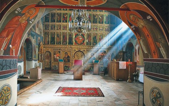 Прежде всего обратите внимание на белую великолепную церковь (Поварская, 5), которая выходит фасадом на Новый Арбат и находится как бы «на стрелке» двух улиц (Академия Гнесиных рядом). В 1801 г. в храме Симеона Столпника венчались граф Шереметев и крепостная актриса Прасковья Жемчугова. 176 лет спустя возле этой церкви наблюдал ритм города приехавший только что в столицу герой фильма «Мимино».