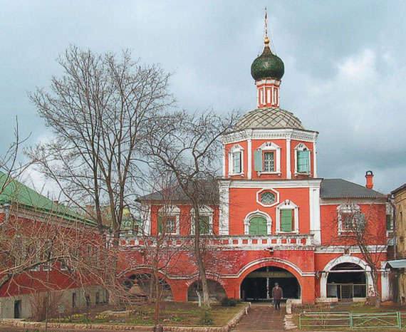 Посетите обязательно также территорию Зачатьевского монастыря (между 2-м и 3-м Зачатьевскими переулками, которые будут от вас по правую сторону). Монастырь был основан в 1584 г. и перестроен позднее в готическом стиле Матвеем Казаковым. Но увидеть творение знаменитого зодчего нам не удастся. Внутренний ансамбль монастыря был разрушен в 1930-е годы, храм Зачатия Анны – взорван. Сохранились лишь надвратная церковь и внешние стены.