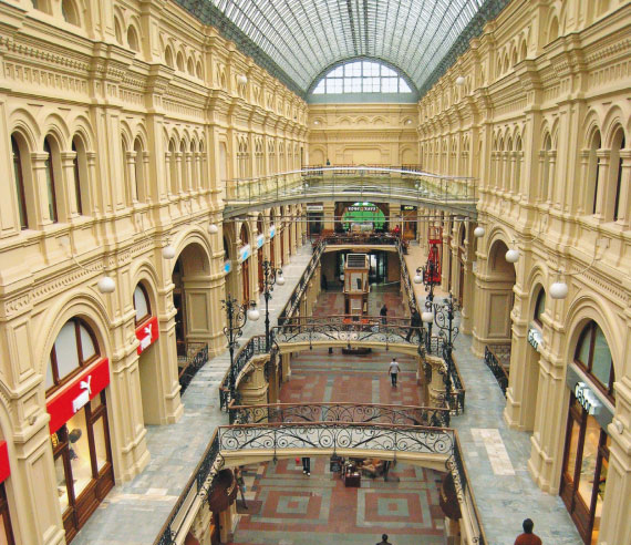 В наше время на почти 80 000 м^2 можно купить все – от именной дизайнерской одежды отечественных модельеров до драгоценностей и эксклюзивной мебели. А потом, не покидая здания, обсудить покупки в ресторанах или кафе (одно из них, к восторгу иностранцев, стилизовано под советскую столовую) или посетить разнообразные художественные акции, например Международную фотобиеннале или показ мод.