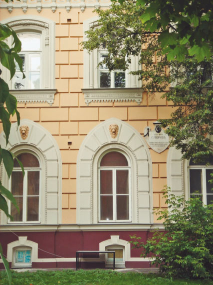 Особняк Я.А. Рекк (дом № 56). Он был построен в 1902 г. Много элементов модерна, фасад здания украшен необычным растительным панно.