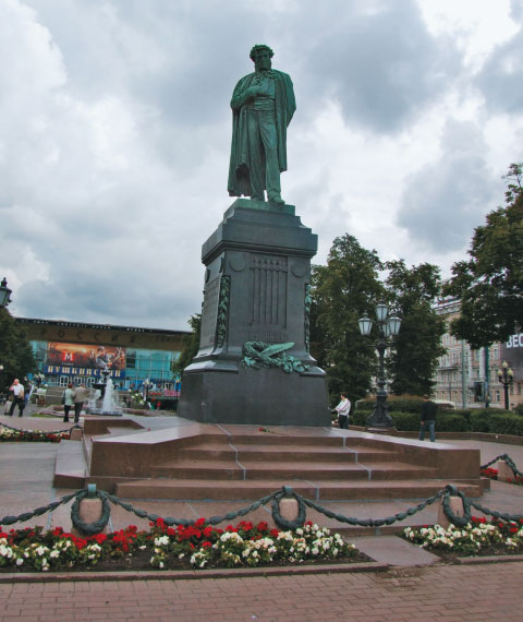Перед зданием кинотеатра «Пушкинский» стоит памятник поэту, торжественно открытый в 1881 г. Правда, тогда памятник стоял на противоположной стороне площади, в самом начале Тверского бульвара. А в этом месте в те времена возвышался Страстной монастырь, варварски уничтоженный большевиками в 1930-х годах. В 1950 г. памятник перенесли с Тверского бульвара на другую сторону площади и развернули на 180 градусов.