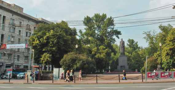 Перед дворцом находится Тверская площадь и памятник основателю города, киевскому князю Юрию Долгорукому. На Тверской, так же как и на Пушкинской площади, в праздничные дни проводятся концерты.