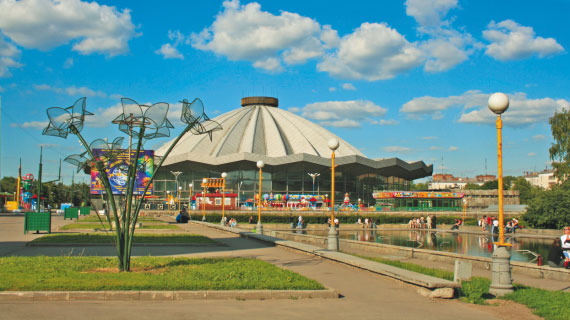Цирк находится по правую сторону от корпусов университета. Вместительное здание, рассчитанное на 3300 мест, было построено в 1970-х. Для Москвы это было ноу-хау: здесь можно быстро менять манежи – конный, водный, ледовый и любые другие.