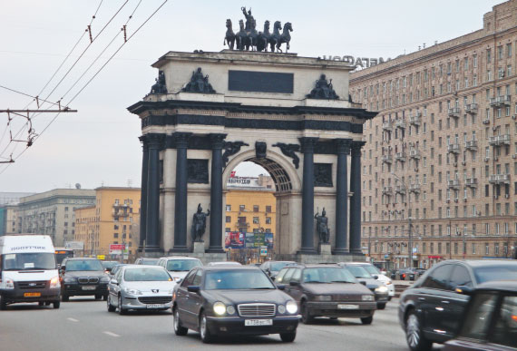 Впрочем, мы уже рассказывали о ней в главе, посвященной фильму «Третья Мещанская». Здесь дополним рассказ любопытным фактом: деревянную арку в 1834 г. полностью переделал архитектор О. Бове. Ее украсили чугунные колонны, ниши, в которых располагаются фигуры русских воинов; а также горельефы, изображающие сцены освобождения Москвы; статуи Победы и Колесница Славы.
