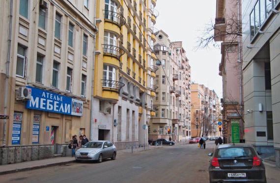 Запечатлен также торжественный парадный вход с колоннами в дом № 9 по Ермолаевскому переулку. Есть детские площадки и дорожки для прогулок. Все то же самое, что и сейчас. За десять с лишним лет здесь, к счастью, почти ничего не изменилось.