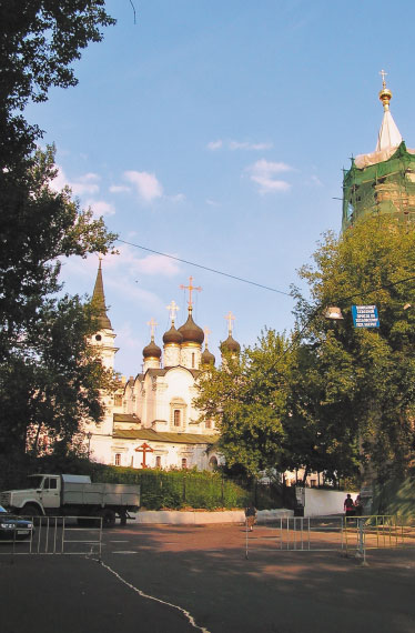 Слева от монастыря вы увидите еще одну православную церковь, также хорошо сохранившуюся с прошлых веков. Это храм Святого князя Владимира, на фоне которого происходила встреча героев фильма. Очень красивое, абсолютно в московском стиле здание. Особенно красиво здесь зимой – машин не очень много, и, если падает снег, вся территория вблизи храма на пригорке превращается в настоящую московскую сказку.