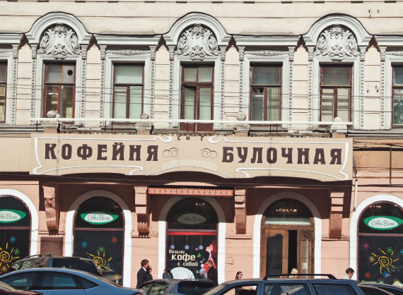 Спустя время сын Филиппова рядом с магазином открыл кофейню с зеркальными окнами и мраморными столиками. Ее интерьер отделывали известные художник П. Кончаловский и скульптор С. Коненков. В наше время здесь также находится кофейня.