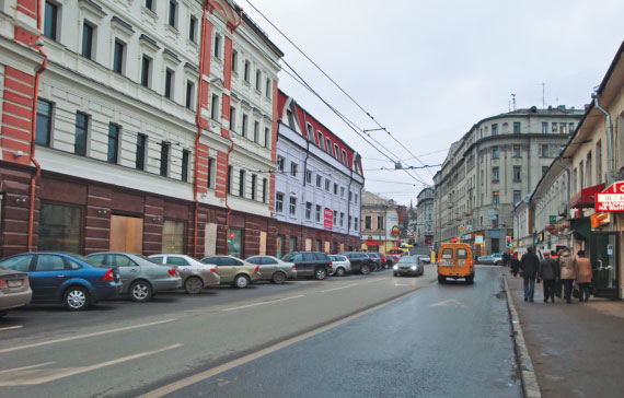 В ближайшей перспективе на перекрестке Солянки и Подколокольного переулка возвышается церковь Рождества Богородицы на Стрелке (около 1800 г., арх. Д. Балашов). Если свернете в Подколокольный, то через пару сотен метров окажетесь на печально известной Хитровке. Здесь на рубеже XIX–XX вв. было «московское дно». Место, где селились преступники, бывшие каторжане и просто несчастные, спившиеся и бездомные люди. Об этом месте писали Горький и Гиляровский; в наше время Хитровку упомянул в своих произведениях Борис Акунин.