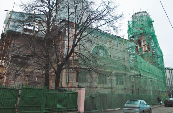 Идите вверх вперед до перекрестка. На повороте перед вами откроется очень красивый вид: впереди белая церковь Святого князя Владимира (см. фильм «Зависть богов»), справа от нее стены древнего Ивановского монастыря («Покровские ворота»). По левую сторону – величественное здание Московской Хоральной синагоги (Спасоглинищевский Б. пер., 10). Вдоль всего Солянского проезда – невысокие особняки конца XIX века.