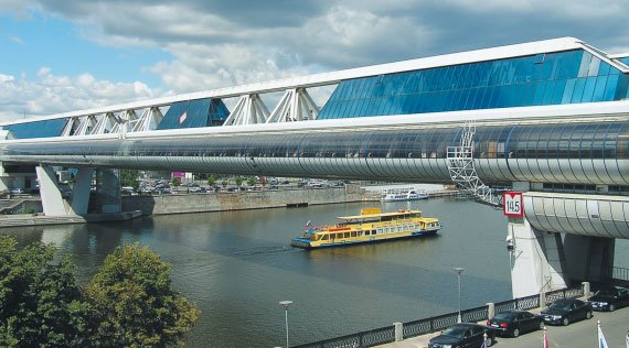 Со стороны Краснопресненской набережной вестибюль моста соединен с выходом со станции метро «Деловой центр» (здесь же – речная пристань для прогулочных теплоходов).