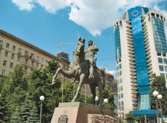 «Башня-2000» стоит на другом конце моста. Аллея с цветниками проходит от Башни до Кутузовского проспекта. Рядом с этим местом находится памятник П.И. Багратиону. Петр Иванович Багратион – российский генерал, князь, герой Отечественной войны 1812 г. Род Багратиона ведет свое начало от Адарнасе Багратида, сын которого Ашот Куропалат был царем Грузии.