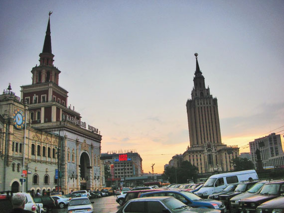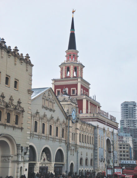 И наконец, чуть позже остальных, в 1864 г., был построен Рязанский (с 1894 г. Казанский) вокзал. Проект здания принадлежит архитектору А.В. Щусеву. В конце XX века прошла крупномасштабная реконструкция вокзала. В 1990 г. были построены новые залы, переходы к станциям метро и на Комсомольскую площадь. А образовавшийся в ходе перемен подземный тоннель, соединяющий все три железнодорожных вокзала, стал самым протяженным в столице. Поезда с Казанского отправляются на Кавказ, Сибирь, Урал, Поволжье и в города Казахстана и Узбекистана.