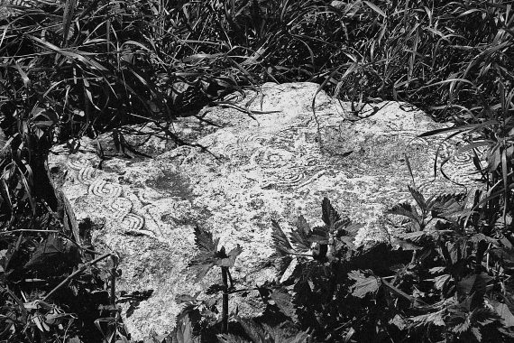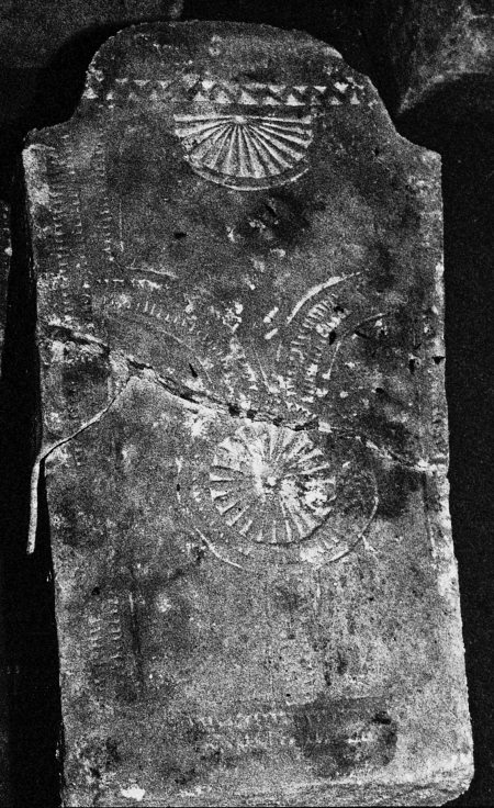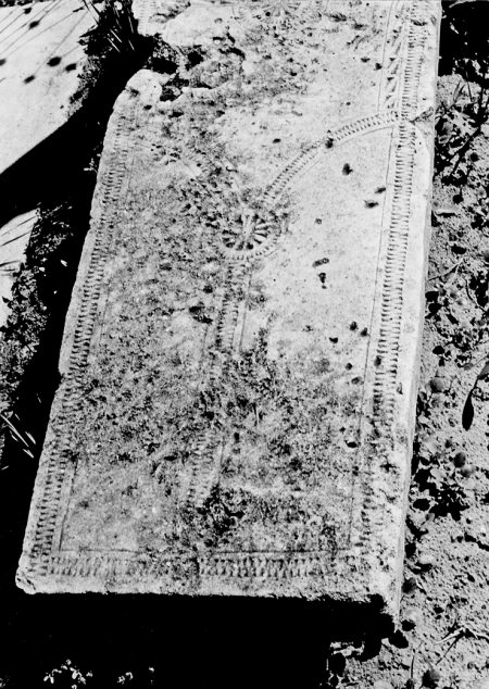 Рис. 2.7. Надгробная плита из Старого Симонова. Такими надгробными плитами была покрыта земля вокруг церкви Рождества Богородицы в Старом Симонове. Согласно нашей реконструкции, под ними была расположена братская могила воинов, павших в Куликовской битве. Именно здесь стоял Дмитрий Донской, как об этом пишут летописи, и несколько дней подряд хоронил убитых. Фотография 1994 года.