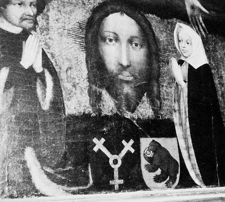 Любопытно, что сохранились старинные гербы, на которых вилообразный крест соседствует с медведем на задних лапах, то есть с хорошо известным гербом Ярославля. Мы приводим пример такого герба из собора Святого Лоренца в германском городе Нюрнберге, рис. 2.8.