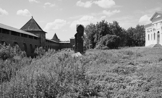 Рис. 2.13. Зарайский кремль. Здесь в траве мы нашли несколько полузакопанных старых русских надгробий. Никто из музейных работников Зарайска ими не интересуется. Фотография 2001 года.