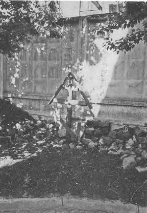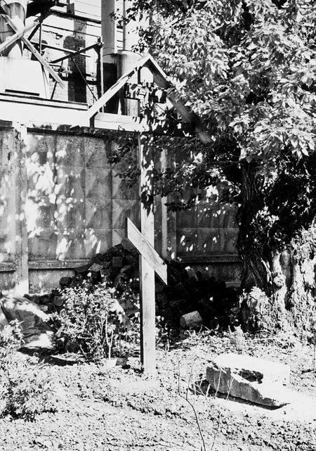Рис. 2.18. Еще один крест за алтарем церкви Рождества Богородицы. Здесь перезахоронены кости и черепа, выбранные из земли при укладывании брусчатки во дворе церкви в 1999 году. Фотография 2000 года.
