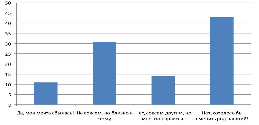 Та же Head Hunter задала своим российским респондентам вопрос: «Вы занимаетесь тем, о чём мечтали?». Ответы распределились следующим образом: