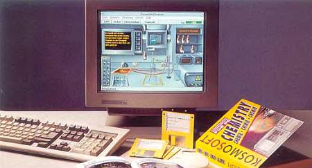 А сейчас мы изучаем химию. На экране появляются химические приборы — газовые горелки, стеклянные колбы, пробирки, фильтры, мензурки — и разнообразные химические вещества. Нажав кнопку мыши, вы можете взять из баночек любые химикаты и проводить опыты — это совершенно безопасно. Кроме того, запасы веществ никогда не кончатся и вам не придется мыть лабораторную посуду.