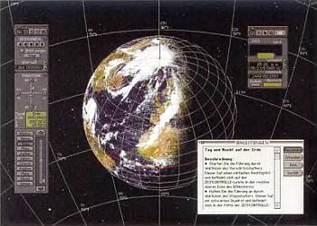 ни одна мультимедиа-программа по астрономии не заставит вас испытать тот восторг, который охватывает любого, кто смотрит на ночное небо в телескоп. Но зато на экране монитора вы увидите солнечное и лунное затмения, небо над Вифлеемом, таким, каким его видели волхвы, пришедшие поклониться младенцу Иисусу Христу, восход Сатурна, движущиеся по своим орбитам планеты Солнечной системы. А в завершение полюбуетесь фотографиями звездных миров.День и ночь на Земле, вращающейся вокруг Солнца. Кадр из записанного на компакт-диске курса астрономии, в котором объясняются многие космические явления, показанные в фильме со спецэффектами.