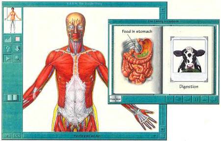 Предположим, вы изучаете в школе анатомию. Вам предстоит узнать, как устроен организм человека, как действуют системы кровообращения и пищеварения, железы внутренней секреции, какую роль играют скелет и мышцы, как работает мозг и многое другое. Все эти сведения не уместятся даже в толстой энциклопедии. Но если тексты сопроводить рисунками, пояснениями лектора, видео и мультфильмами и записать все это на компакт-диск, ваша энциклопедия, которая уместится на ладони, превратится в нечто