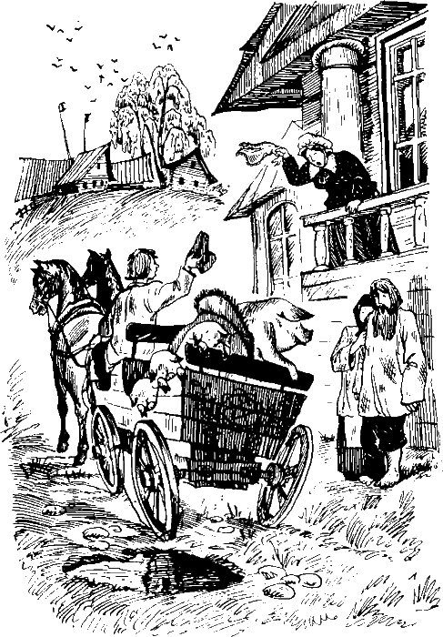 Запрягли пару лошадей, посадили в повозку свинью с поросятами. Иван и тронулся в путь.