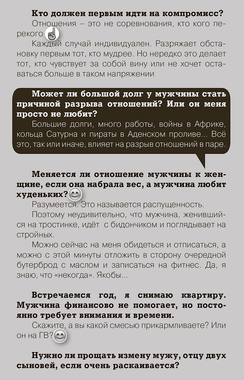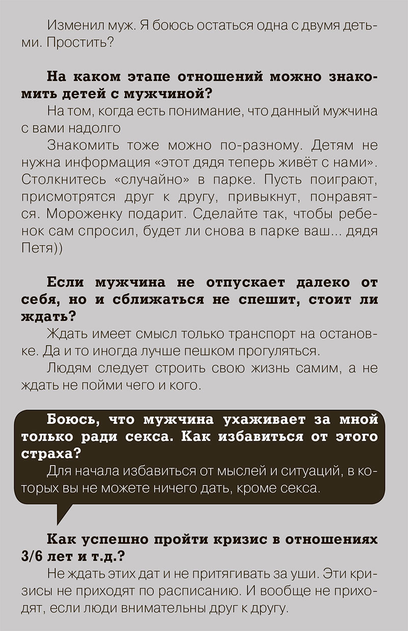 Само собой, это не подходит тем женщинам, которые согласны на абы-какого мужичонку, лишь бы был. Но именно им и приходится потом глотать всю пыль и разгребать проблемы в слезах. Я же рекомендую думать заранее и, избегая чужих ошибок, строить свою счастливую жизнь. Тем более, что мужчин буквально миллиарды! Выбирай – не хочу, как говорится!