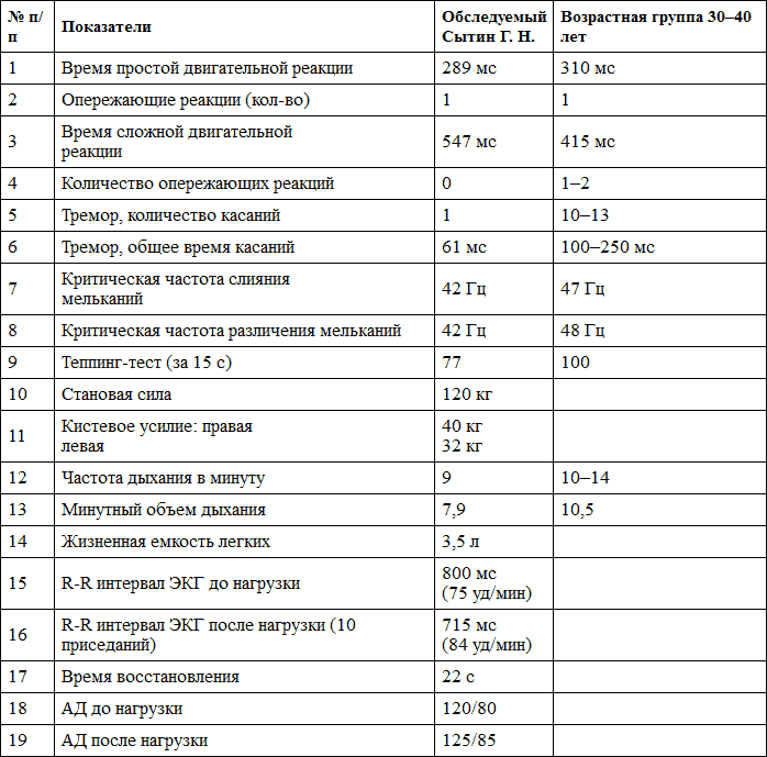 О результатах обследования Сытина Г. Н. (возраст 75 лет), проведенного сотрудниками лаборатории системных механизмов адаптации человека НИИ нормальной физиологии им. П. К. Анохина Российской АМН 06.06.97 г.