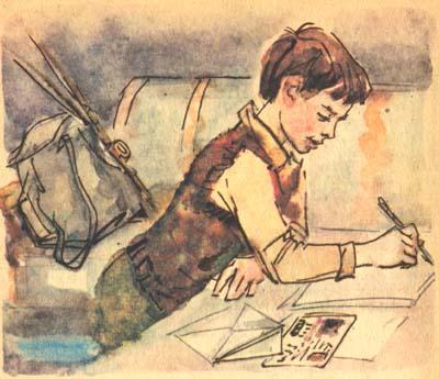 — Серега, я письмо твое получил! Меня папа как раз за газетами послал. Открываю ящик, — а там письмо. Это ты здорово придумал — сразу в ящик положить! Кстати, у нас тоже дожди идут.