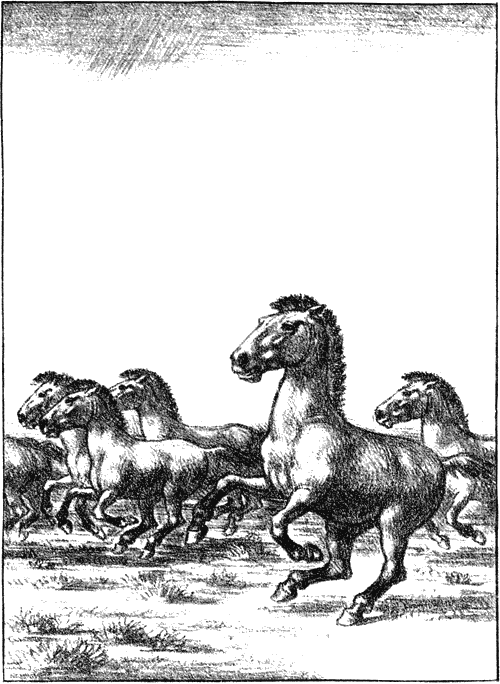 «Не успел я отползти шестидесяти шагов, — вспоминает Грум-Гржимайло о своей встрече с табуном диких лошадей, — как с фырканьем и храпом вылетел из кустов жеребец. Казалось, это сказочная лошадь — так хорош был дикарь! Описав крутую дугу около меня, он поднялся на дыбы, как бы желая своим