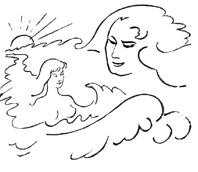 Река напоминала девушку, в стремительном движении уносящуюся вперед. В одном месте берега почти сходились, как бы вырисовывая тонкий стан. Ниже по течению широкий разлив реки походил на развевающееся платье, а верхняя ее часть терялась в густых зарослях невысоких пушистых деревьев, которые, как пышные волосы, украшали головку девушки.