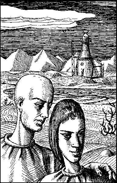 Внизу, в нескольких сотнях шагов от «Элона», длинным овалом раскинулось озеро. Позади, в туманной дымке, мягко синели пологие горы. Голубой ковер долины прорезала светлая лента речки, катившей прозрачные воды к озеру. Жилые купола из легкого дымчатого пластика прижались к склону высокого холма, густо поросшего синим кустарником. Его мелкие, багровые цветы испускали терпкий аромат. Сюда долетало свежее дыхание озера, но не достигали пыльные ветры Южной пустыни. От куполов к озеру спускались прямоугольники полей, голубевших дружными всходами. Небольшая рощица, высаженная из оранжереи звездолета, расправила ветви.