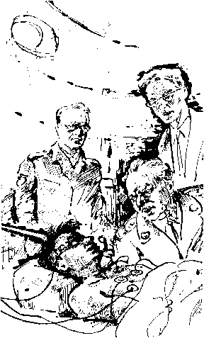 На Флетчера, который впервые видел допрос под облучателем, эта картина произвела неизгладимое впечатление. Долго потом стояла у него перед глазами круглая комната, залитая резким синим светом, серые, словно у мертвецов, лица коллег и полуобнаженный Жюль в глубокой прострации. Руки, ноги и грудь допрашиваемого были обвиты черными проводниками, которые, как змеи, тянулись к аппарату. На выбритую макушку Жюля из облучателя падал узкий сноп лучей. Жюль отвечал на четко задаваемые вопросы невнятным, еле слышным шепотом. Но робот-дешифровщик тут же «переводил» его ответы монотонным, лишенным всякой выразительности голосом.