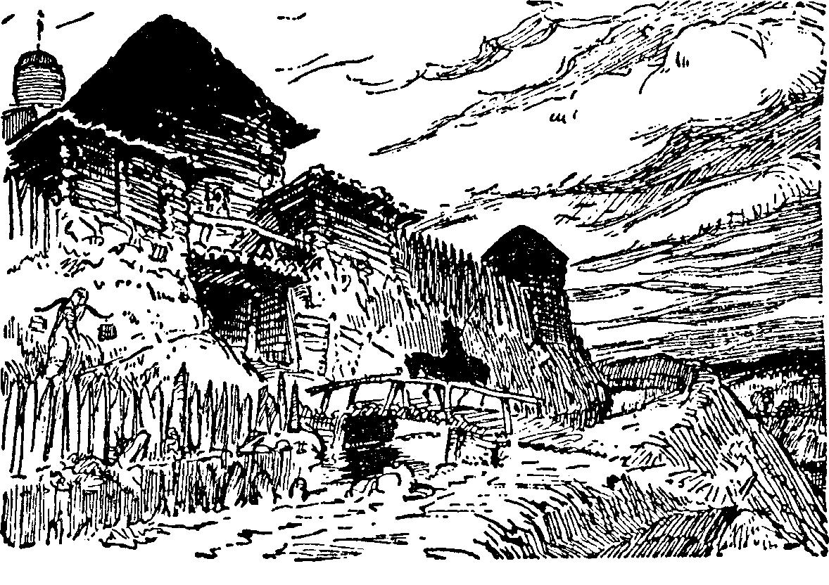Крепость была невелика, окружена земляным валом с оградой из заостренных дубовых бревен. Башня стояла против ворот, чуть отступя внутрь крепости, так что каждый, кто входил в ворота, должен был пробираться между стеной и башней, проходом столь узким, что двум всадникам едва можно было