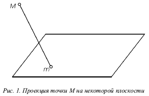 Проекцией точки М на некоторой плоскости называют изображение, которое строится в нижеследующей последовательности (рис. 1).