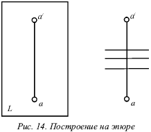 При построениях на эпюре всегда следует располагать проекции а и а точки А на одной вертикальной прямой (рис. 14), которая перпендикулярна оси пересечения плоскостей. Поэтому, даже если положение оси пересечения плоскостей остается неопределенным, но ее направление определено, ось пересечения плоскостей может находиться на эпюре только перпендикулярно прямой аа.