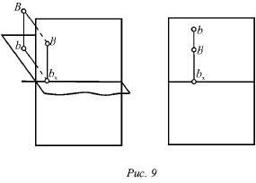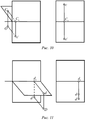 Для подобных точек признаком того, что она лежит на одной из плоскостей проекций, служит то, что одна ее проекция находится на оси пересечения плоскостей.