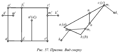 При рассмотрении призмы сверху (рис. 57) будет видно только верхнее основание призмы.