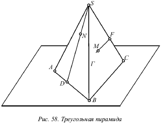 На рисунке 58 показана треугольная пирамида, которая находится на горизонтальной плоскости.