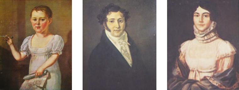 Лермонтов Ю. П., отец поэта. Лермонтова М. М., мать поэта. (портреты работы неизвестного художника. Масло. 1810-е гг.)
