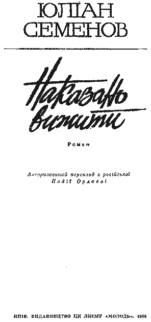 Перекладено за виданням: Юлиан Семенов. Приказано выжить. М., «Военное издательство», 1984.