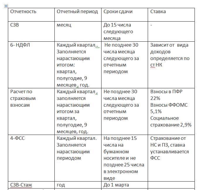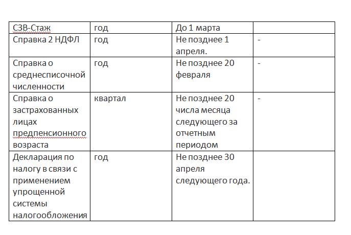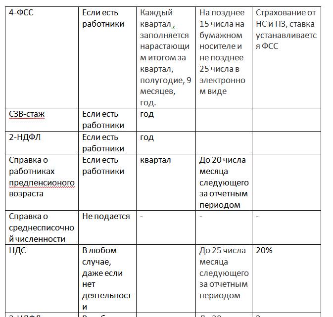 Продолжение таблицы «Отчетность для ИП»