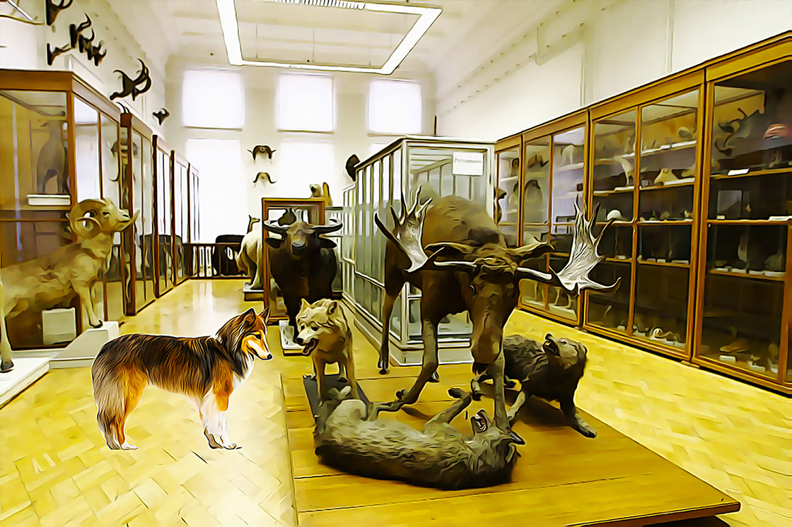 И тут Серомашку срочно куда-то вызвали, и её заменила волчица Эльза. Мило скалясь, она продолжила экскурсию. Все подошли к чучелу первобытного человека, рядом с которым замерли первобытные собаки. Среди них я с ужасом узнал себя… Да, это был точно я…