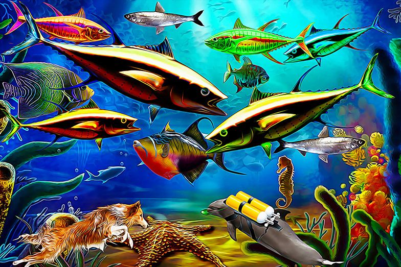 – Полно. Рыбы там вообще красивые и удивительные… Не бледные, как у нас, а всякие разные, цветные. Многие рыбёхи вообще светятся. Некоторые – на наших похожи, только крупнее намного.