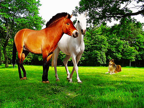 сразу перебрался поближе к нашей деревне. Ромашка к нему по нескольку раз на дню бегает. Я, естественно, всем хищникам нагрозил, чтобы его не трогали. Хотя его и так все зауважали, как на диковинку приходят смотреть. Что и говорить, где ещё дикого и свободолюбивого коня встретишь, который людям не покорился? Он и сам со временем со всеми подружился. То с оленями пасётся, то с косулями. Мы его Прживалик прозвали.Примерно через полгода я Ромашку к Серой Шапочке сводил. Посмотрела Серомашка своим удивительным рентгеновским зрением и подтвердила, что трое жеребят будет. Теперь вот Ромашка уверена, что обязательно Пржевальские родятся, а я думаю, что особенная порода появится. Удивительные и необычные лошади, каких ещё в природе никогда не было.