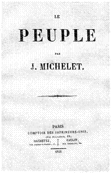 Несмотря на неприязненное отношение Мишле к машинам (в прямом смысле), связанное с опасением, что они сделают людей своими рабами и уничтожат искусство, заменив художественные произведения стандартными поделками, Мишле признает выгоды и преимущества, принесенные введением машин. В частности, он указывает, что товары, изготовленные с помощью машин, доступны беднякам; появление дешевых хлопчатобумажных тканей он называет «своего рода революцией во Франции». Но он обрушивается на «злосчастную способность объединять свои силы, не объединяя сердец, сотрудничать не любя, действовать и жить вместе, не зная друг друга».