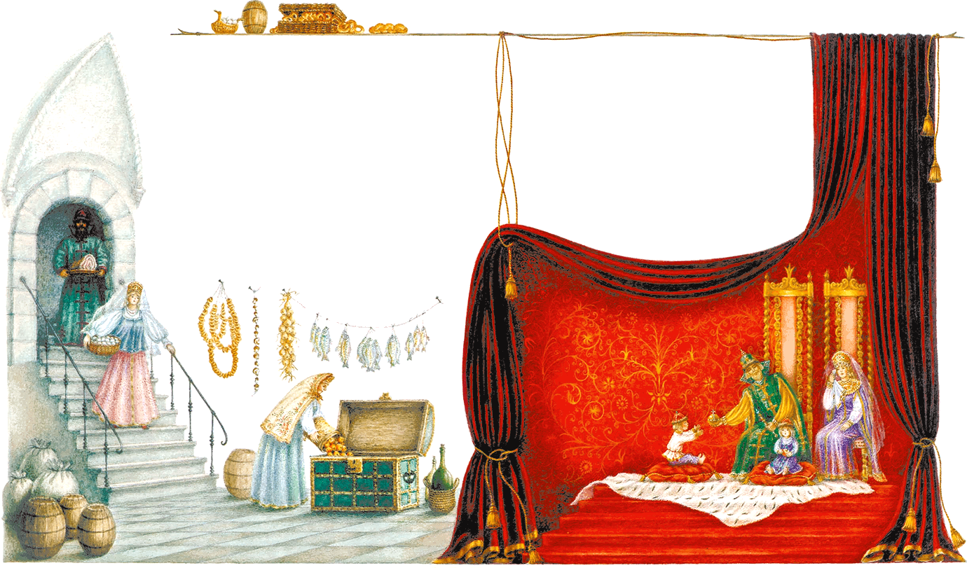 – Ах, бычок, – кричат царские дети, – медведь гонится.
